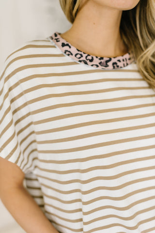 I Think I'm in Love Round Neck Loose Tee in Khaki Leopard