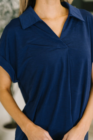 Sea You Soon Collared Top in Navy
